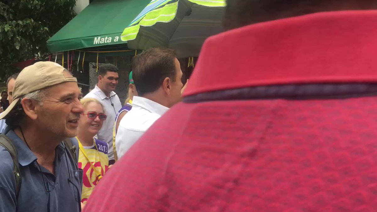 O prefeito João Doria tentou ir a um bloco infantil em Pinheiros, neste sábado, mas não deu muito certo. Quando ele chegou, o bloco “Pasmadinho” já havia saído e o que ele encontrou, além de fãs, foi gente protestando.