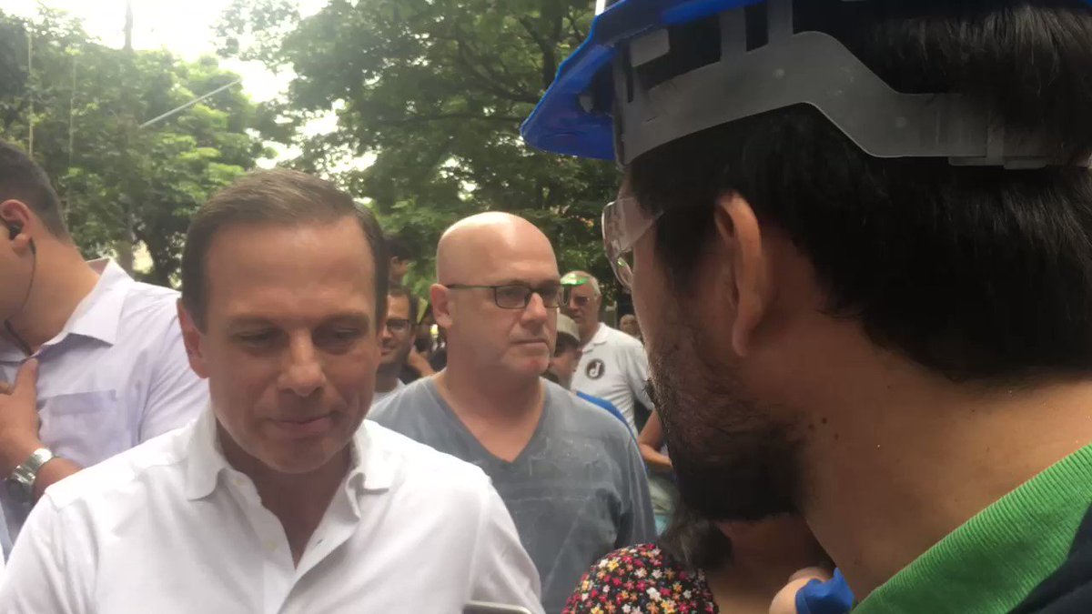 Enquanto o Doria continuava chamando os opositores de “Lula”, ele era acompanhado por um grupo que cantava uma marchinha sobre a retirada de grafites da cidade.