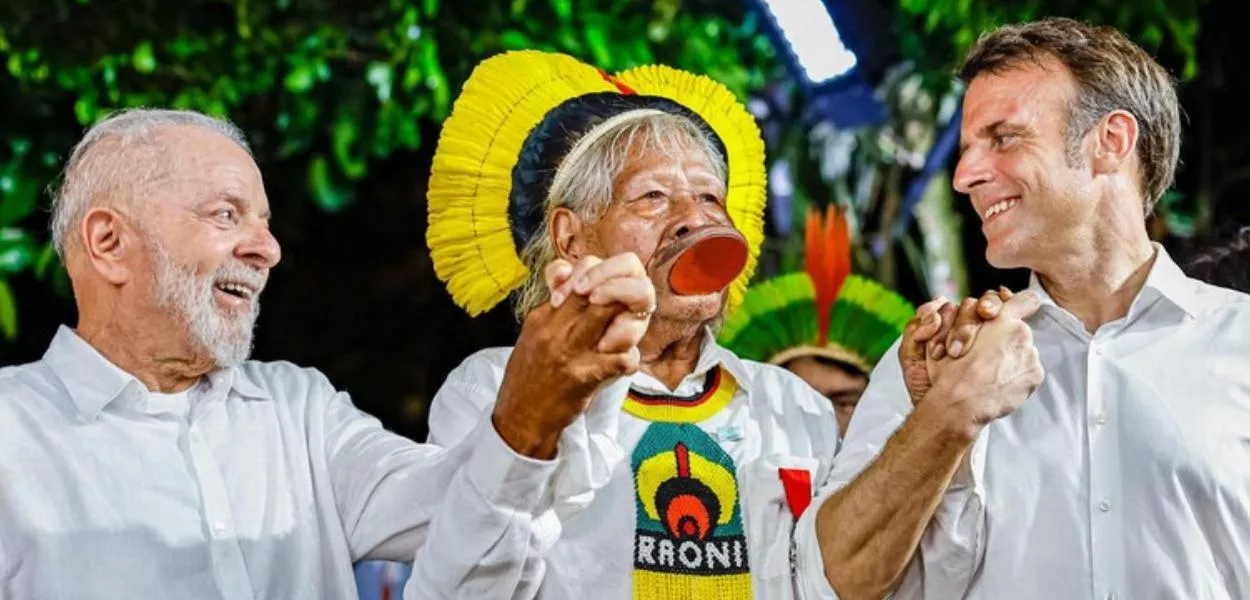 Agência Gov - O presidente da República, Luiz Inácio Lula da Silva (PT), participou, nesta terça-feira (26), da cerimônia de condecoração da Ordem Nacional da Legião de Honra ao líder indígena da etnia kayapó, cacique Raoni Metuktire. A honraria foi concedida pelo presidente da França, Emmanuel Macron, na Ilha do Combu, em Belém do Pará. "Lula e eu fazemos hoje causa comum por um dos nossos amigos nessa terra que pertence a vocês. Que é um tesouro de biodiversidade, mas também de povos indígenas que aqui nasceram, cresceram e tiveram a sua tradição", disse Macron em seu discurso.