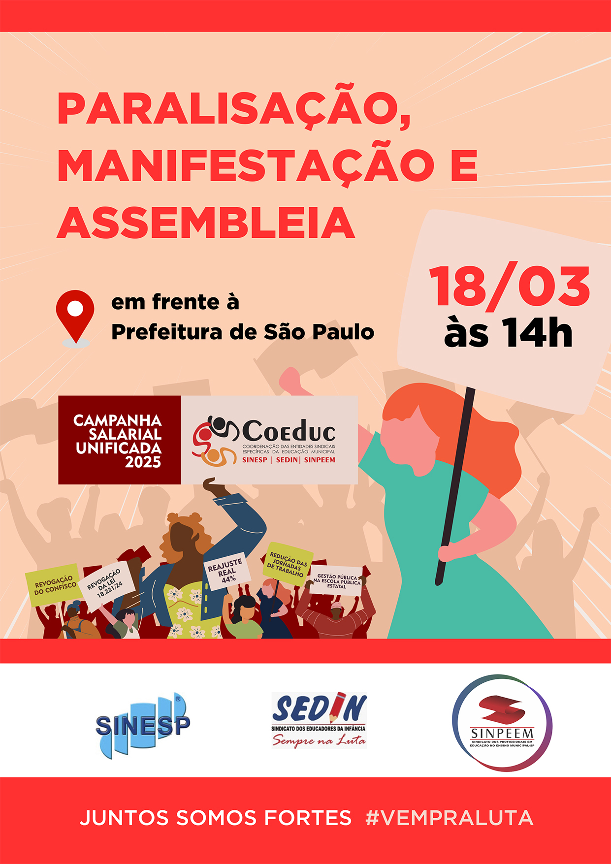 18/03, às 14h – paralisação, manifestação e assembleia geral em frente à Prefeitura.