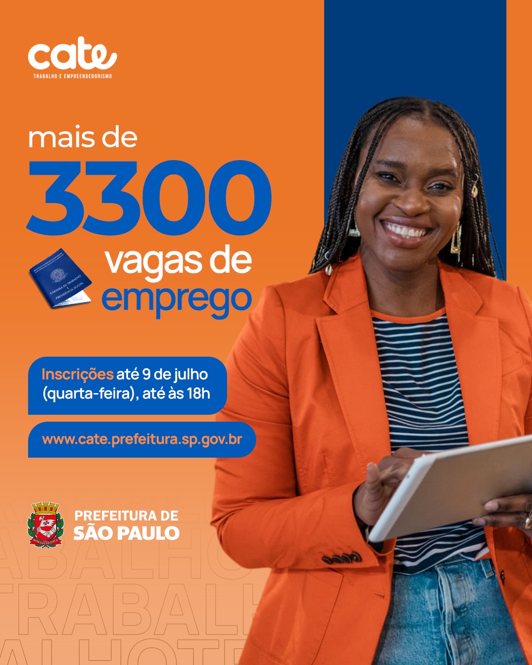 O Cate - Centro de Apoio ao Trabalho e Empreendedorismo, da Prefeitura de São Paulo, está disponibilizando mais de 3.300 vagas de emprego em diferentes áreas. As oportunidades incluem setores como comércio, serviços, construção civil e saúde. Os salários variam de acordo com os cargos, indo de R$ 700 (estágio de atendente de lojas) até R$ 4.827 (operador de escavadeiras).
