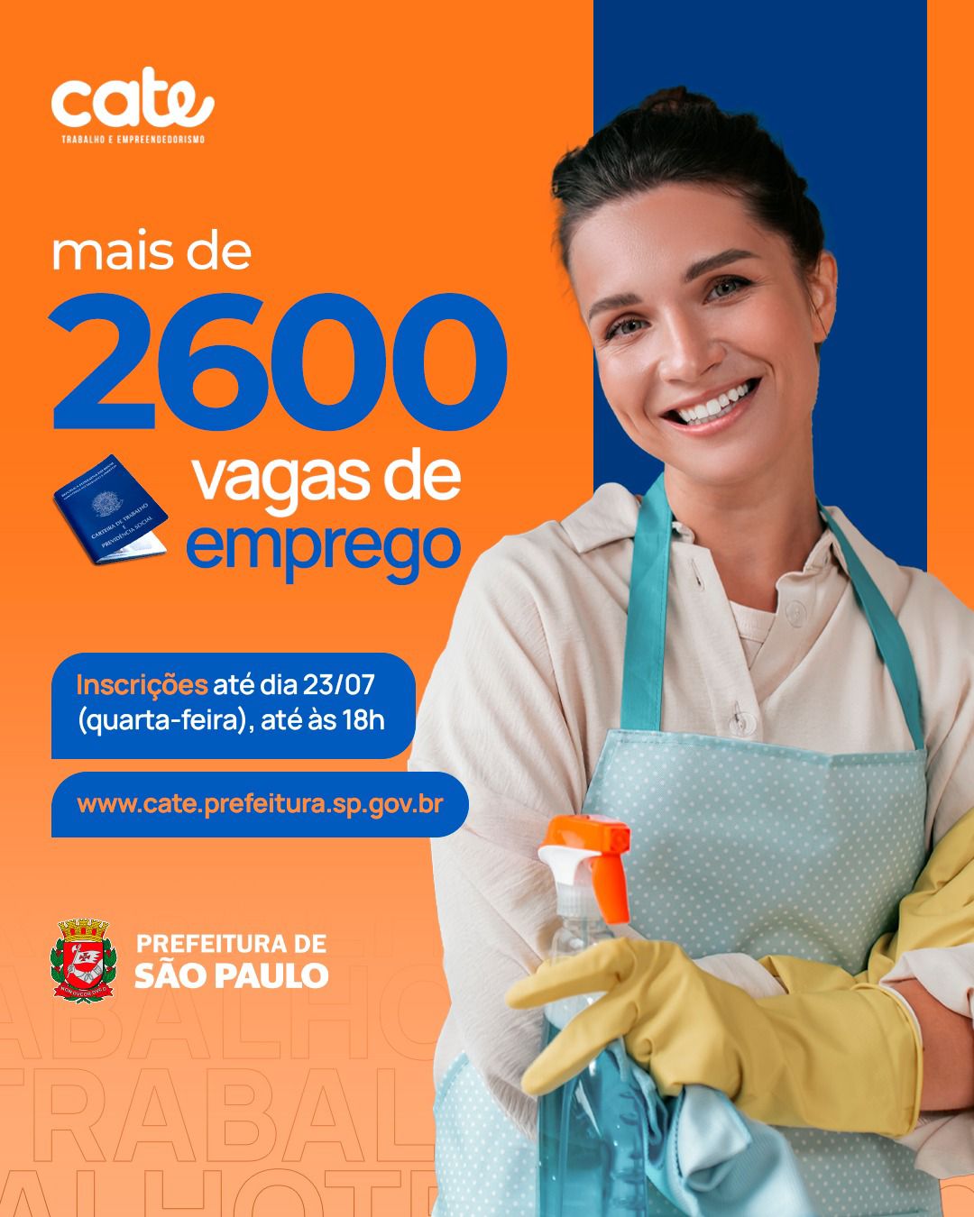 Os interessados devem realizar a inscrição até o final do dia 23 de julho, por meio do Portal Cate. Para participar da seleção, é necessário apresentar RG, CPF, laudo médico, carteira de trabalho (física ou digital) e currículo atualizado.
