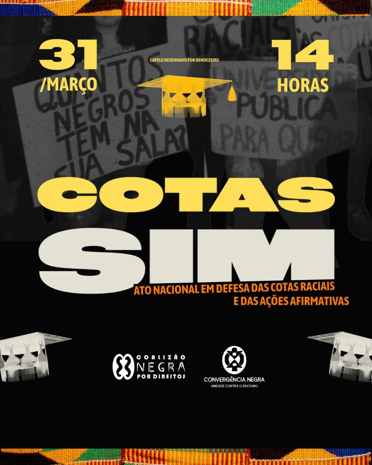 Organizações do movimento negro, estudantil e popular convocam para o próximo dia 31 de março um ato nacional em defesa das políticas de cotas raciais e das ações afirmativas. A mobilização será realizada às 14h, no Anhembi, em São Paulo.