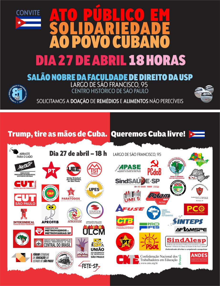 ATO PÚBLICO EM SOLIEDARIEDADE AO POVO CUBANO - 27 DE ABRIL (SEGUNDA) 18 HORAS